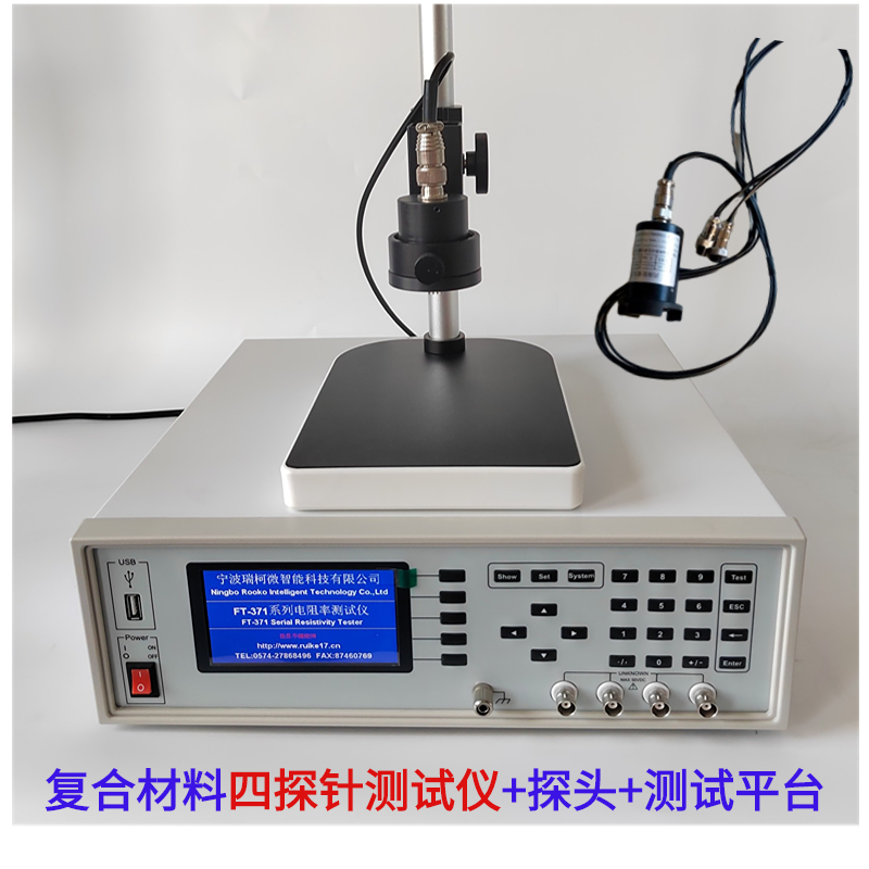 四探針測試儀的原理是利用四個(gè)電極來消除被測電阻器材料的接觸電阻和電纜電阻對測量結(jié)果的影響。四個(gè)電極分為兩對,一電極對被用作電流輸入,另一電極對被用作電壓檢測。通過這種方法,測試儀能夠在測試物表面建立一均勻電場,從而避免接觸電阻對測試結(jié)果的影響。