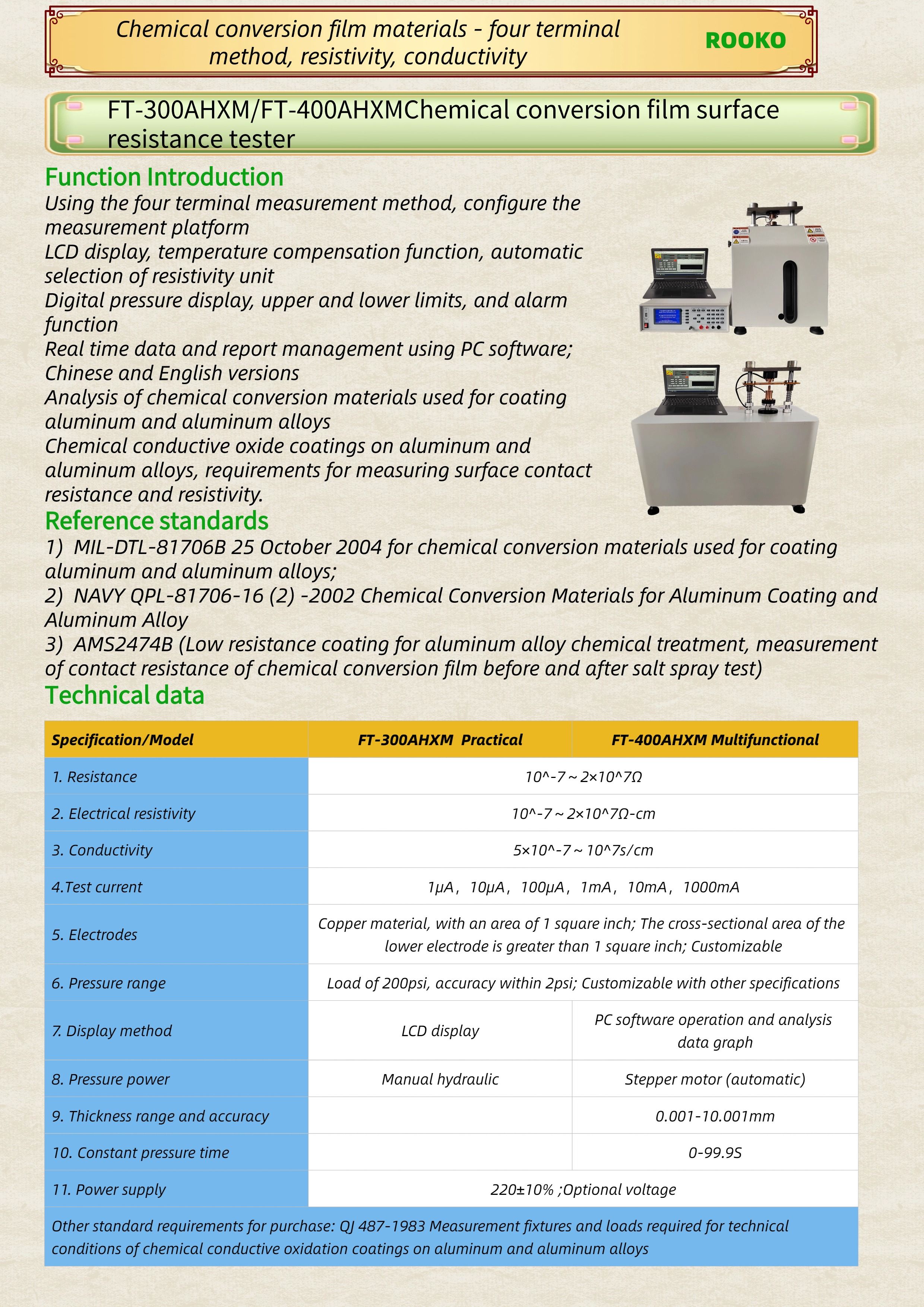 FT-300AHXM/FT-400AHXMChemical conversion film surface resistance tester