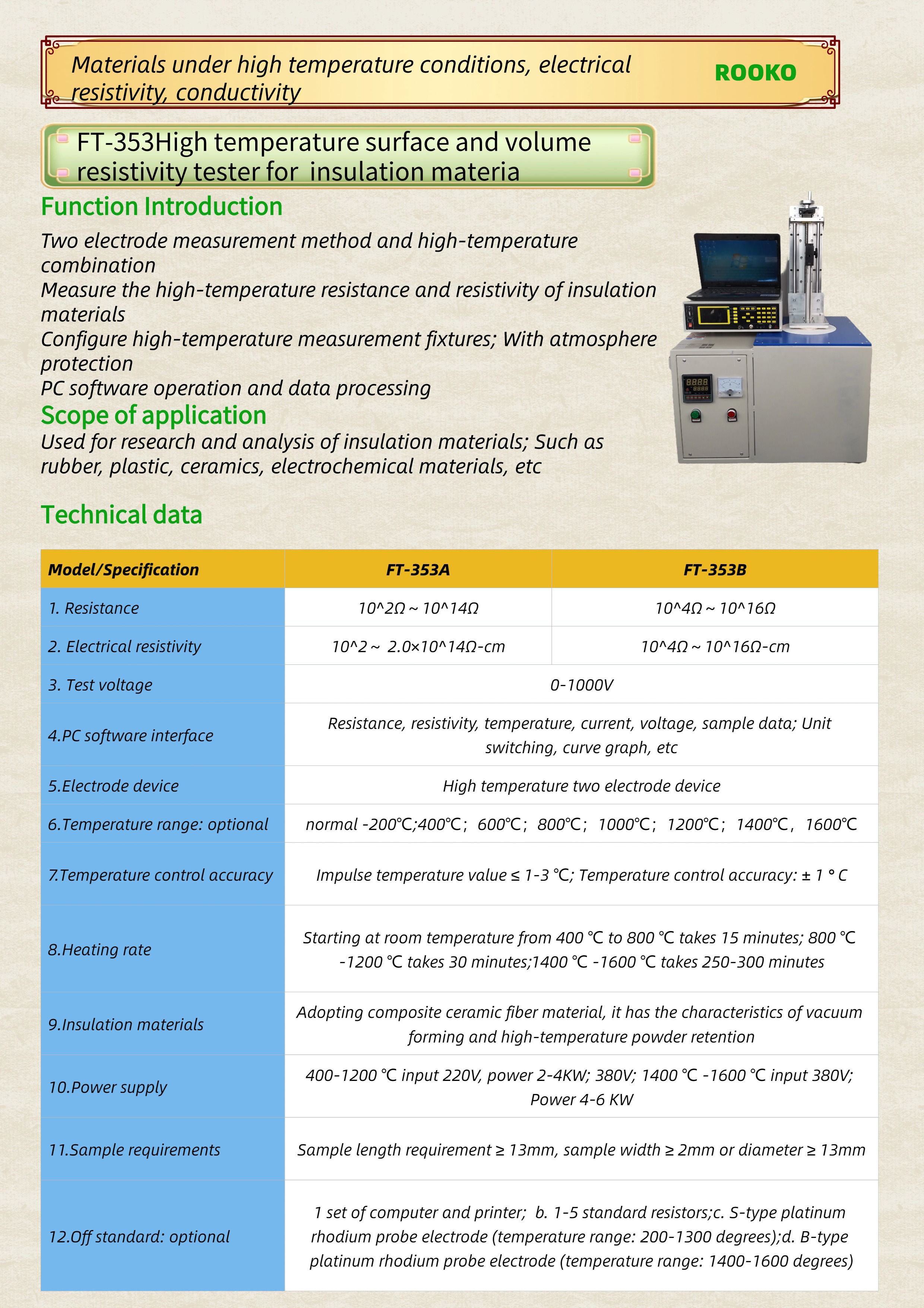FT-353 High temperature surface and volume resistivity tester for insulation materia